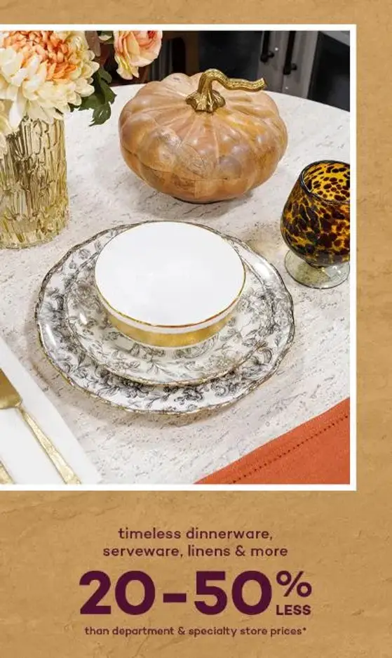 20-50% Less Timeless Dinnerware, Serveware, Linens & More