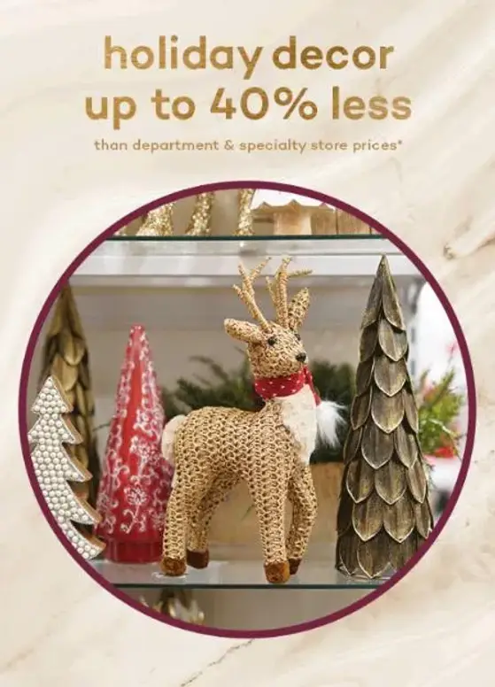 Limited time only! Shop in store and enjoy up to 40% less on holiday decor.